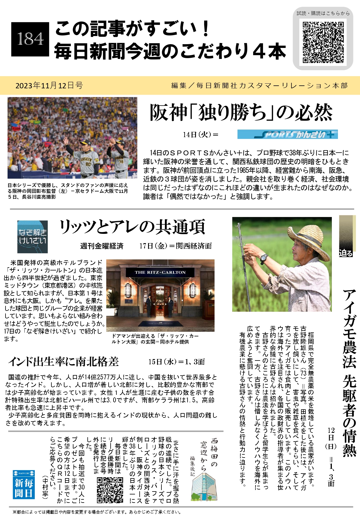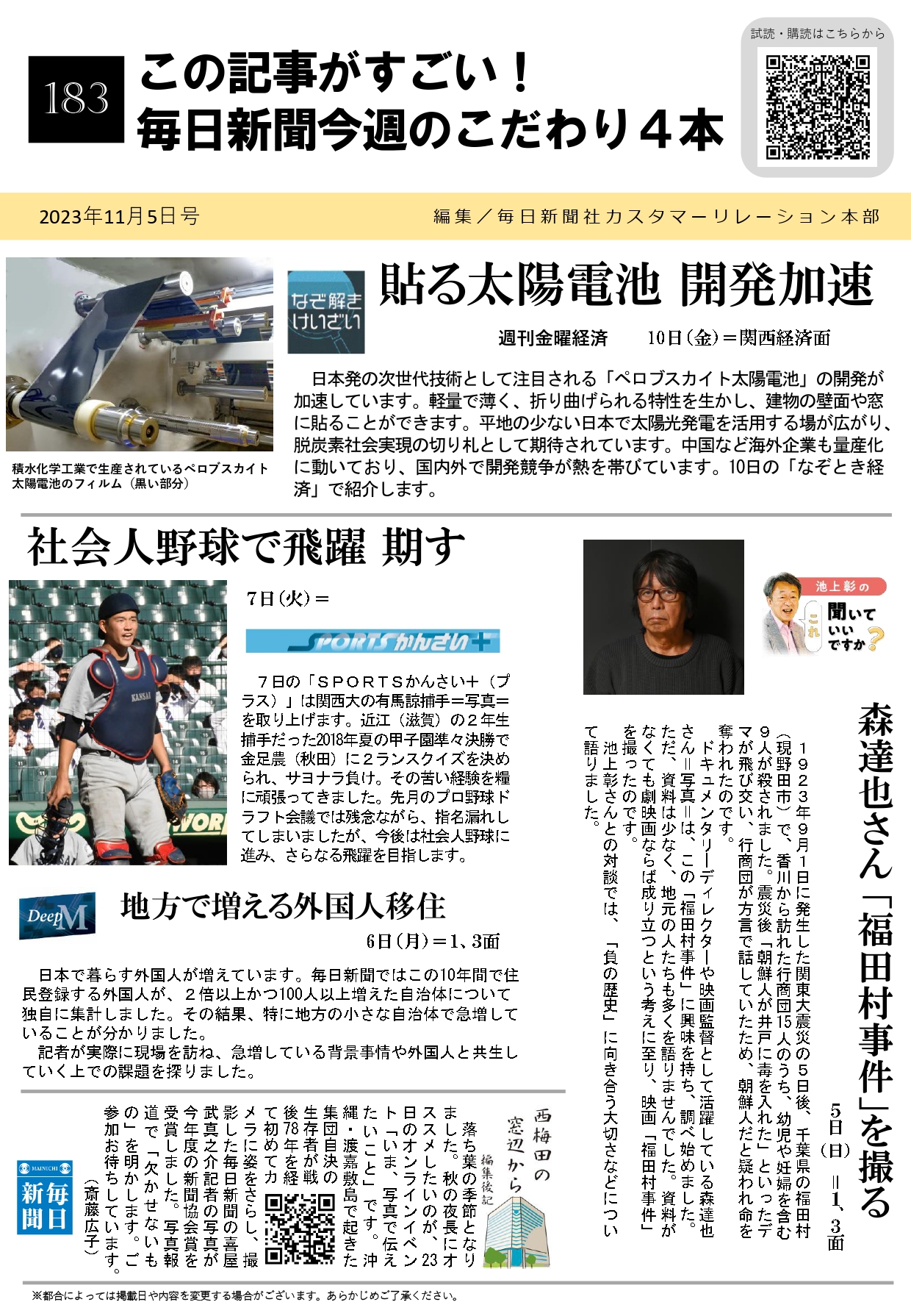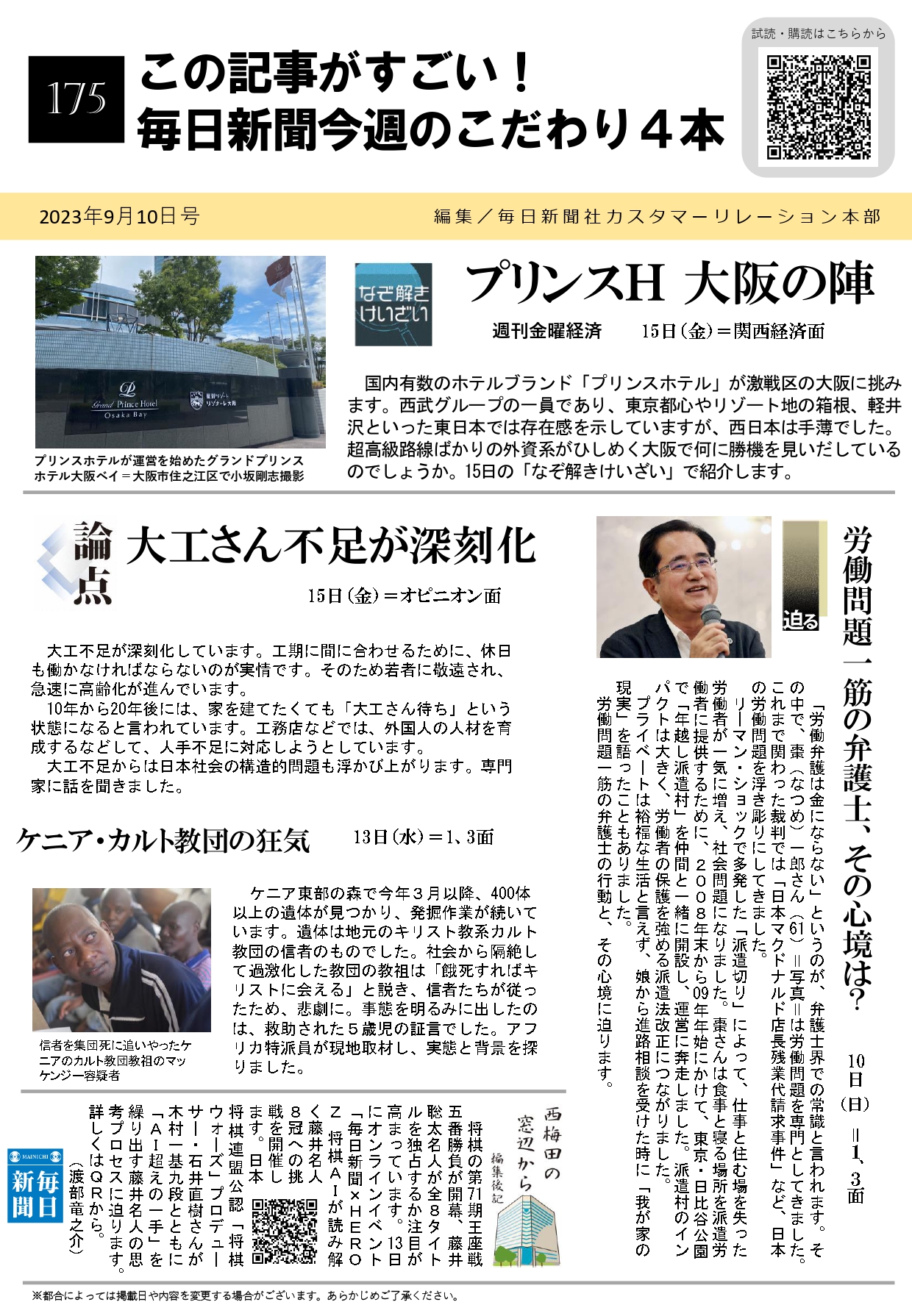 【2024年8月11日号】この記事がすごい! 毎日新聞今週のこだわり4...